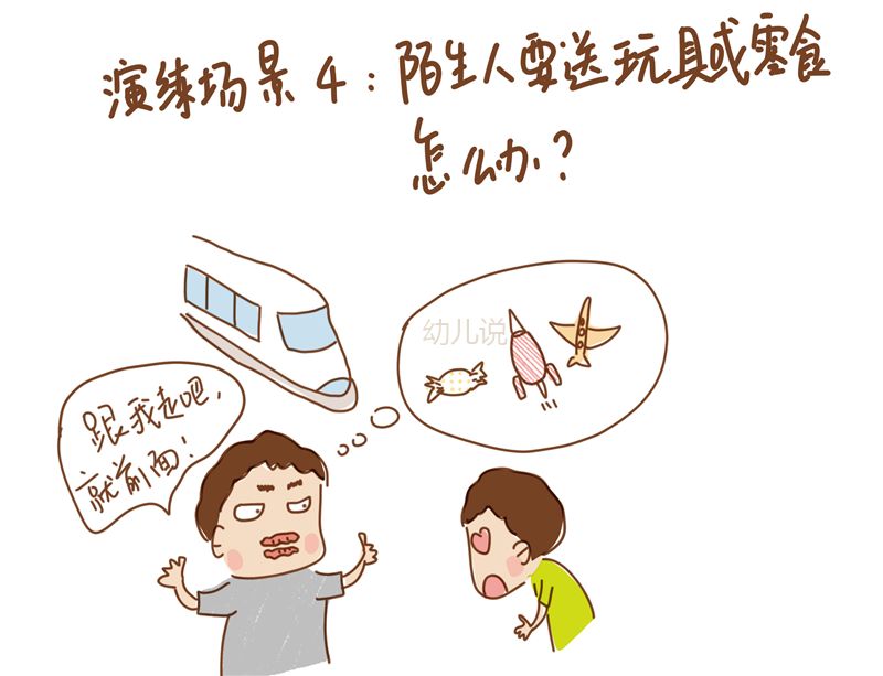 火车站,陌生人说:”我有很多零食/玩具,跟我去拿吧,就前面不远。“