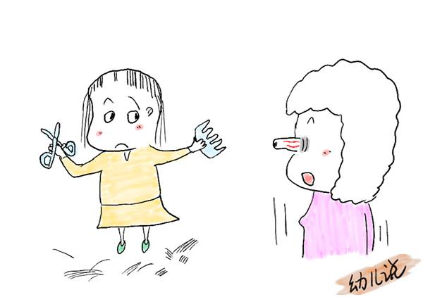 看到妈妈平时给她剪头发,便学着妈妈的样子给自己剪;看到妈妈平时化妆,便学着妈妈的样子给自己化妆;看到动画片里的小鱼做饭吃饭,便把食物跟小鱼分享……模仿,也是孩子智力成长的重要一环,剥夺了模仿,也就剥夺了孩子的成长。所以,尝试宽容对待孩子的“捣蛋”和“突然安静”带来的小心脏都要跳起来的感觉吧!