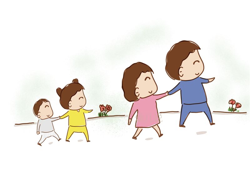 一对年轻的夫妻手牵着手在公园的小道上走,跟在他们后面的两个孩子,一个小女孩和一个小男孩,小男孩抬头对小女孩说:“姐姐,爸爸妈妈是好朋友,我们也是好朋友。”小男孩伸出胖嘟嘟的小手,牵起了姐姐的小手,然后嘻嘻哈哈地往前跑。