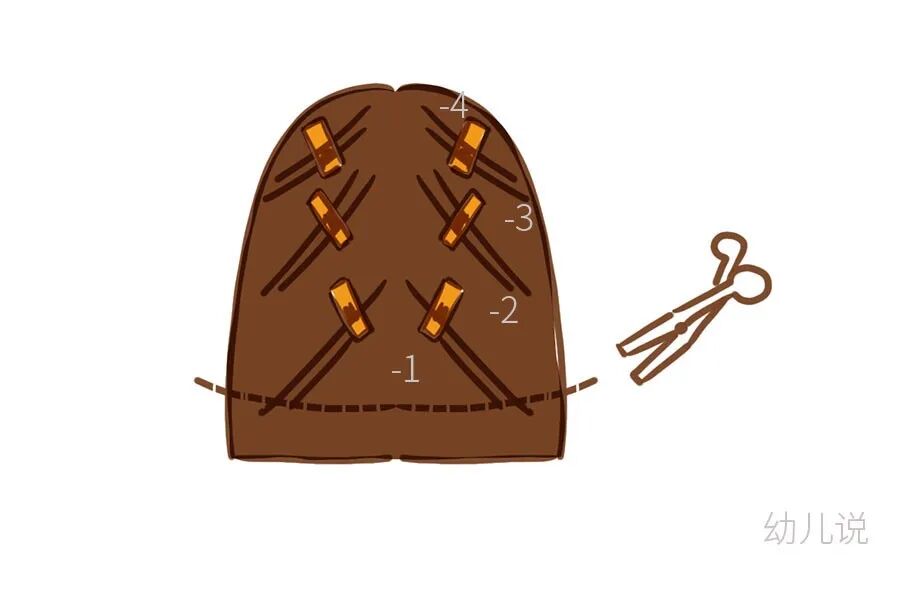 步骤1,把脑后的长发按照图,夹出四个层次,即负1,负2,负3,负4;
