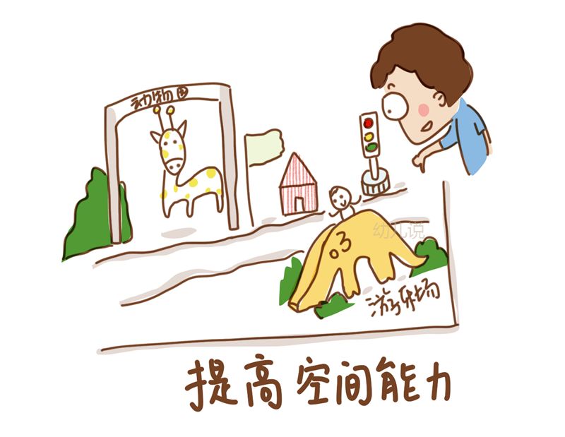 除此之外,父母们还可以陪孩子在家里玩,比如父母可以在家里的某个地方藏上一个玩具,妈妈或爸爸在纸上画出家里的平面图,然后在图上标记出玩具所在的位置,让孩子看着家里的平面图寻找。