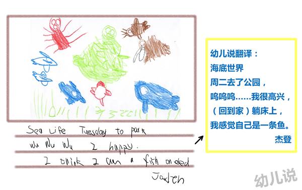 上面的故事来自一位长期关注幼儿说的妈妈,这位妈妈将孩子的画和事情的经过给幼儿说留言。她最后问,孩子这样的表达形式好吗?