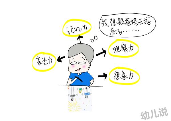 美国心理学家Claire Golomb也认为,因为年龄的限制,年幼的孩子可能不擅长用语言来表达自己内心的感受。通过画画表达,有利于孩子表达力的提高,因为幼年时期的绘画表达,据说在成年后往往转化为讲故事的表达方式,讲故事常常是被誉为人与人之间最好的沟通和表达形式。这一点,幼儿说也在《这样批评孩子,比任何说教好10倍》一中有详细的分享。