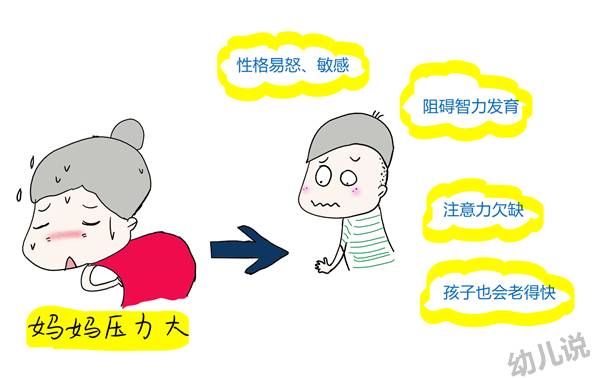如果妈妈们在孩子出生后才有较大的心理压力,也会给孩子带来不少影响。妈妈压力大,孩子常常是第一位觉察者,这些孩子会不安,他们比同龄孩子更早学会察言观色,脾性也会相当敏感。压力大的妈妈跟孩子的亲子关系普遍有心理距离。