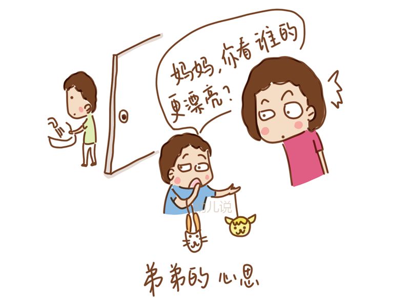 在一个二孩家庭里,哥哥和弟弟在客厅做手工,哥哥做完后要上洗手间,这时弟弟也刚好做好了,他拿起哥哥的手工和自己的手工,跑到妈妈跟前小声地问:“妈妈,你看看哥哥的手工和我的手工,谁的更漂亮?”一边问还一边往洗手间看,生怕被哥哥听见似的。见妈妈欲言又止,弟弟又悄悄说:“妈妈你偷偷告诉我就行,我不会告诉哥哥的……”