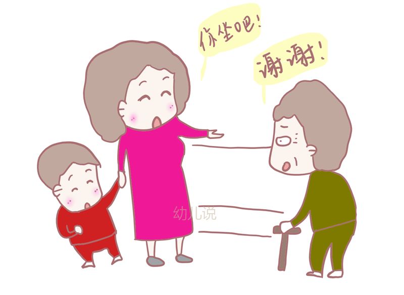 上了地铁后,儿子找了个座位坐下,一回头,我们看见一位拄拐杖的老奶奶走了进来,我示意儿子让座,儿子非常高兴地把自己的座位让给了对方。我拍拍儿子的小脸蛋,称赞他“懂得礼让”。