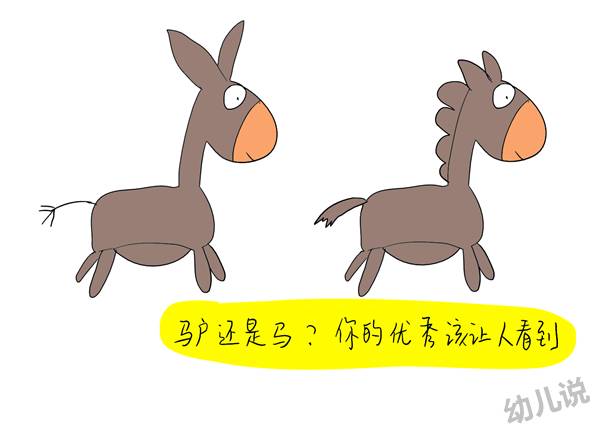 相传很久很久以前,驴跟马一样擅长奔跑。但驴羞于展现自己的奔跑,它认为,是金子的总会发光。相比之下,马常常在人们面前奔跑,展现它们的速度,所以,马便成了人们驰骋沙场的工具,而驴成了拉磨的牲畜。后来,驴不公平地质问造物主,被造物主反驳:别抱怨,你的优秀没让人们看到。