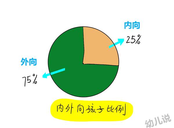 外向的孩子占75%,内向的孩子占25%,其中还有部分孩子有时表现出外向,有时表现出内向。