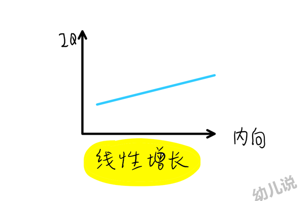 1986年,心理学家Silverman, L. K.经过研究发现:孩子的智商与内向程度呈现线性比例,越内向的孩子智商往往越高。并且内外向孩子在校园中常常出现的大概率现象是:低年级时,外向的孩子成绩较好,高年级时,内向的孩子成绩较好。学历越高、专业技能越好的大多数孩子,往往属于内向型的孩子。内向的孩子,常常因为专注带来优势。