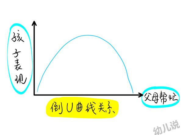 即使对于年幼的孩子来说,父母的帮忙给他们带来的积极效应也不是无限的,而是常常呈现这样的曲线: