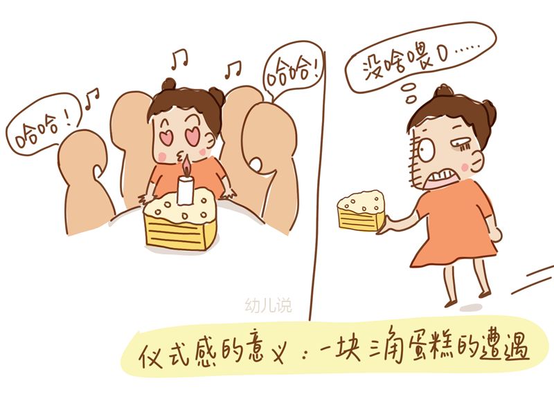 为人父母常常发现,当我们带小朋友外出就餐,而不是在家里吃饭时,他们吃得比在家里更积极,也会更投入,并且情绪愉悦的持续力也会比较强,这是因为“仪式感”在起作用。跟在家里吃饭相比,在餐馆就餐需要“被安排座位——点菜——等待——玩玩具/吃餐前小食——就餐——餐后水果”。我们也不难发现,小朋友每逢节假日也会特别兴奋,因为节假日需要吃某种食物,进行某种形式的纪念。所以,仪式感会给孩子带来愉悦的情绪,也容易给孩子留下难忘的印象。