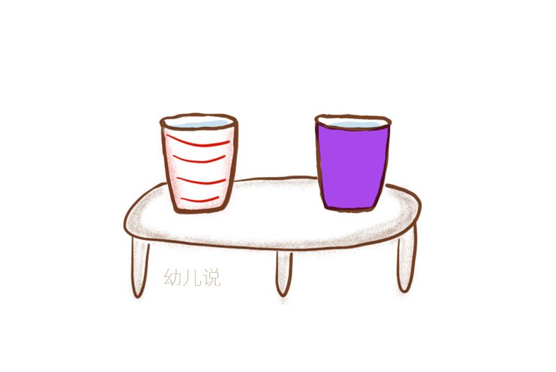 两个一次性杯子,颜色或花纹不一样。如果杯子外表一样,可以让孩子用彩色笔涂上不一样的颜色,或描上不一样的花纹。最后,给每个杯子装上自来水至九分满。