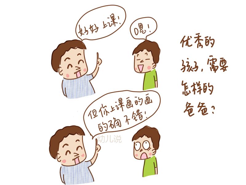 但是,好爸爸,常常是有约束力却又不古板。达芬奇的爸爸,在这方面是典范。据说达芬奇小时候很调皮,上课常常不认真,总在课堂上悄悄画画。有一次,他偷偷地在上课时画了老师的画像,自我感觉画得不错,还饶有兴致地带回家给爸爸看。爸爸一看,心想这兔崽子没认真上课,可是一看儿子的画,的确画得不错。所以爸爸反而称赞他画得很好。受到鼓励的达芬奇画得越来越好,后来还被送到绘画老师那里专门学画画。