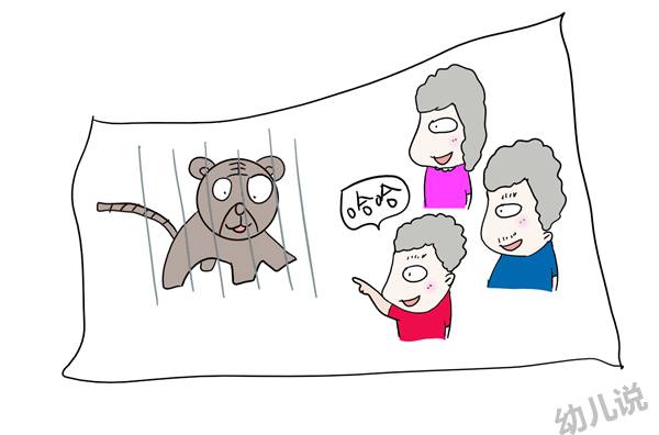 画的是他和爸爸妈妈高兴地到城里的动物园看老虎。