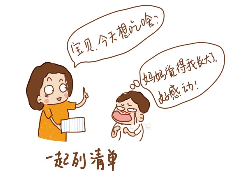 当孩子成长到能够表达意愿的年龄,父母可以在买什么菜肉上跟孩子“讨论”,爸妈们可以这样问:“妈妈要去买菜了,宝贝今天想吃什么?”因为参与感,会提高孩子吃饭的积极性,当他们吃饭时,或许会这样想,“这条鱼是我提议的”,“这白菜也是我让妈妈买的”……