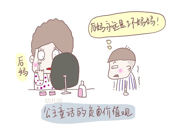 在小朋友接触的很多童话故事里,比如白雪公主、灰姑娘等故事,后妈永远是“坏妈妈”,王子总是钟情于公主漂亮的外表,甚至有时会因为公主外表的变化而改变态度……这些错误的价值观会误导孩子。因为对孩子们来说从书本来的就是“真理”,这跟年幼孩子缺乏判断意识有关,但这种意识的力量不小。我们身边从不缺乏总对继母心存防范的孩子,以及一些总梦想在生活中偶遇王子的孩子。所以,我们作为父母,除了需要筛选掉传颂负面价值观的童书,并且还要适当地给孩子纠错——在给孩子们讲完后提醒孩子,哪些行为和态度是错误的,避免孩子养成错误的价值观。