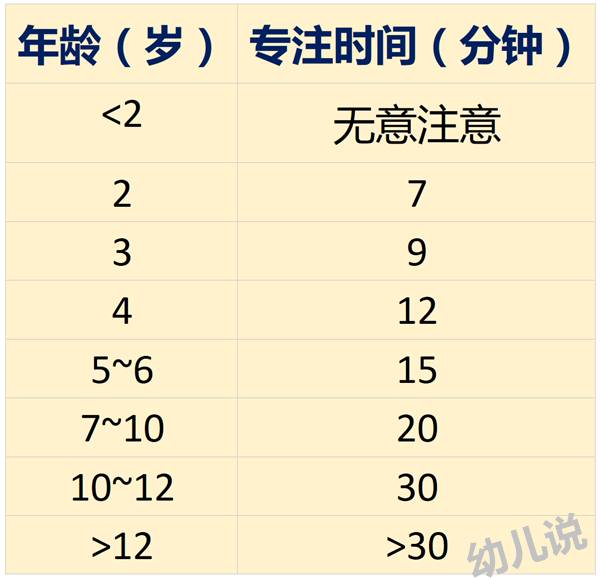 附《不同年龄孩子的专注力时间表》: